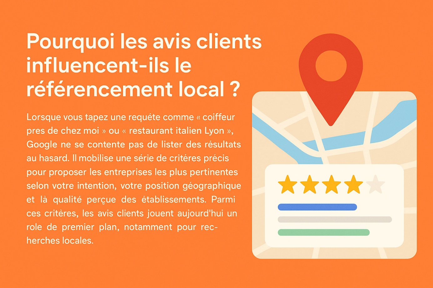 Vous êtes-vous déjà demandé pourquoi certains établissements apparaissent systématiquement dans les premiers résultats de recherche sur Google, accompagnés de cinq étoiles et de dizaines d’avis élogieux ? Ce n’est pas un hasard, mais bien le fruit d’un travail de fond en SEO local. Aujourd’hui, les avis clients sont devenus un levier de visibilité incontournable pour les entreprises locales. Ils influencent non seulement la décision d’achat, mais aussi le positionnement dans les résultats géolocalisés de Google et des autres moteurs de recherche. Dans cet article, nous allons explorer en détail leur rôle dans le référencement local, les bonnes pratiques pour les gérer efficacement, et les stratégies à mettre en place pour en générer régulièrement.